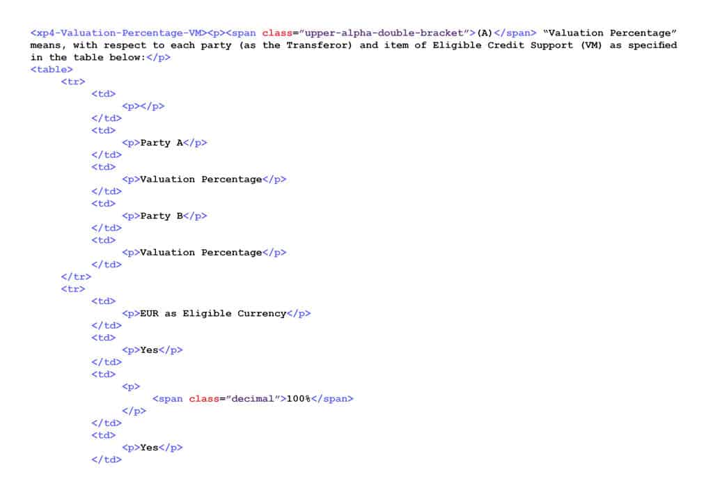 During the time that this project was being done, we did not have a concrete data strategy in place. The end-goal of the development teams were to deliver tagged XML’s to the customer. This XML was also used in an analytics application for searching through tags. Some presentation and styling logic was frequently inserted into the data.